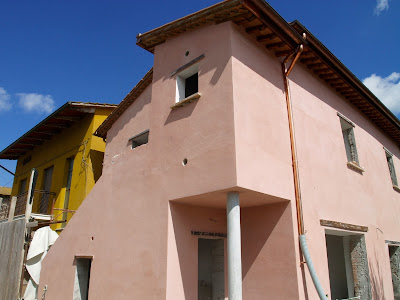 It's a lovely sunny day here in Umbria so this morning Alba and I took a walk up to the village to take photos of our newly plastered house. The scaffolding came down yesterday and we can finally get a proper look at the work that's been done. I'm really happy with the way it's looking so far. I had a few doubts about the colour but now that I can see it properly I love it. The inside is light and airy and seems so much bigger now that it's been plastered. There's still a lot of work to be done but finally I can see light at the end of the tunnel!